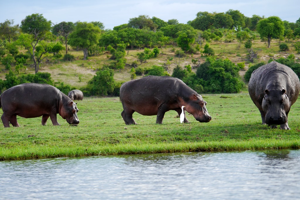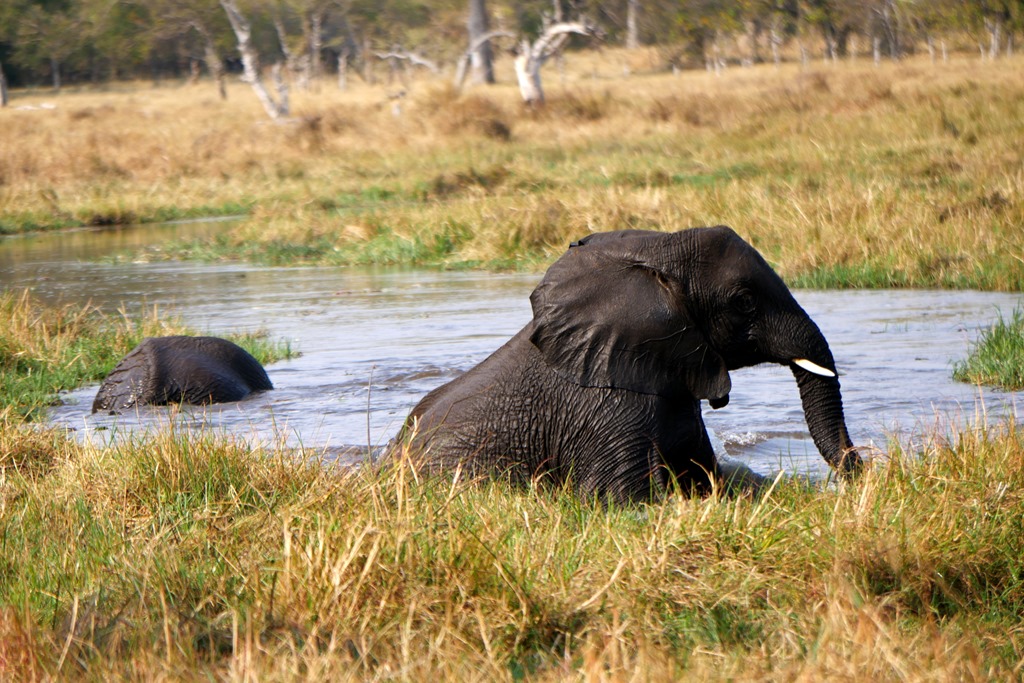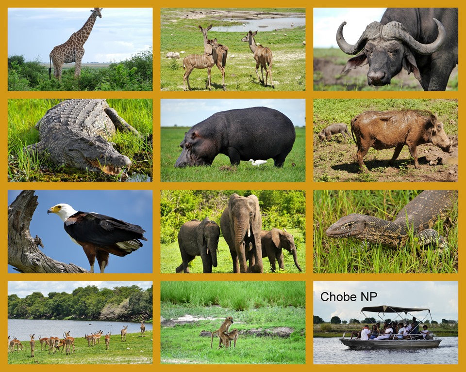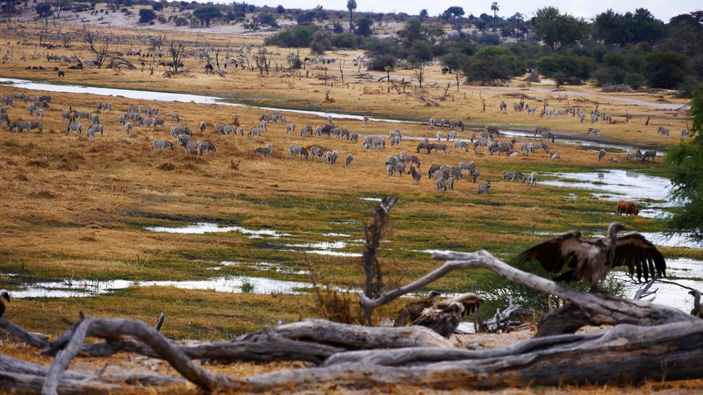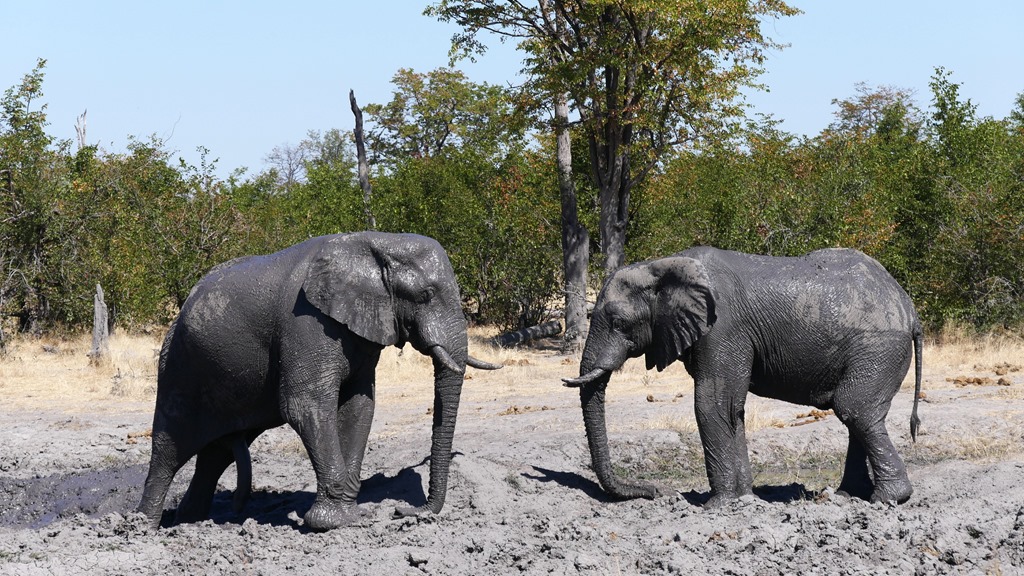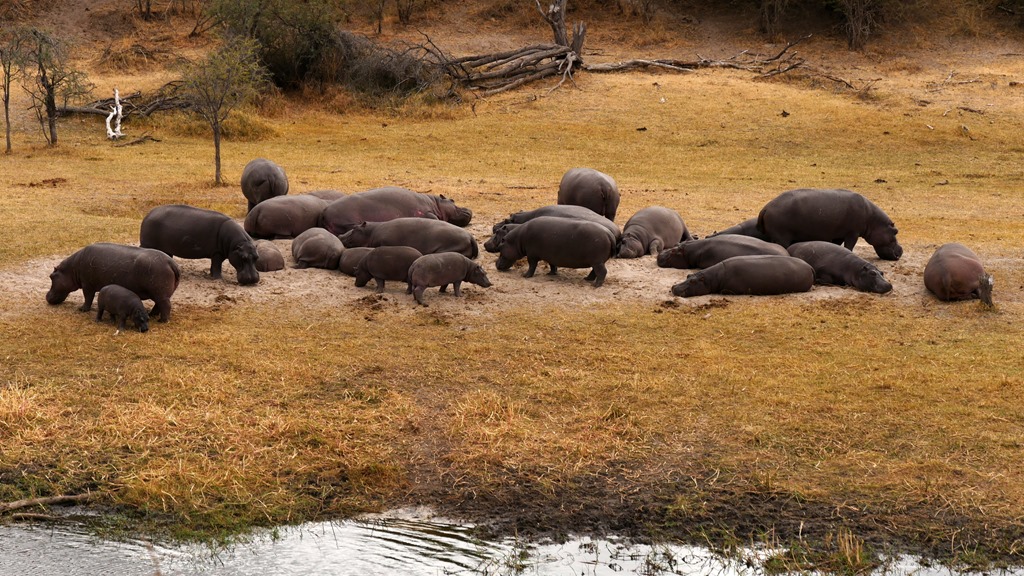 Wir sehen Elefanten, Krokodile, Hippos, eine giftige Puffotter  und eine spannende Vogelwelt wie z. B. Schreiseeadler und Schlangenhalsreiher. Besonders lustig anzusehen, wie sich die Eisvögel unermüdlich ins Wasser stürzen, um kleine Fische zu jagen. Danach wollen wir auch noch mal in den Park und fahren deshalb zum westlichen Eingang. Hier muss der Boteti Fluss mittels einer kleinen Fähre gequert werden. Diese ist aber unerklärlicherweise außer Betrieb. Drei Deutsche mit Geländewagen und Dachzelt stehen schon ratlos dort. Sie meinten, ich könnte sicherlich durchfahren, da unser Auto ja höher sei. Leute aber nicht mehr mit mir, ich fahre nie wieder durch eine Furt mit mir unbekannter Tiefe! Also entschließen wir uns, zum Nord Eingang des NP zu fahren. Das sind dann zwar über 100 km mehr, aber da wir anschließend sowieso noch in den Nxai Pan NP wollen, dessen Eingang fast gegenüber liegt, ist es nicht wirklich ein Umweg. Wir übernachten im Busch, in der Nähe des Eingangs und sind schon 6.30 Uhr im Park. Die Pisten sind sandig, aber recht gut befahrbar. Die Sonne geht auf und taucht die Landschaft in ein warmes Licht. Unser Ziel ist der Westteil des Parks, da wir uns dort flussnah die meisten Tiere versprechen. Diese Rechnung ging dann auch so auf, auf dem Hinweg sahen wir zwar ein paar einzelne Elefantenbullen, aber dann am Fluss sahen wir so große Herden von Zebras und Gnus friedlich grasen, wie wir es so vorher noch nicht gesehen hatten. Auch eine große Gruppe von Hippos mit 26 Tieren lag genüsslich in der Sonne, was ja so auch nicht so alltäglich ist, da sie eigentlich eher nachts länger aus dem Wasser kommen. Wir finden, dass dieser Park auf jeden Fall, zumindest einen Tagesbesuch wert ist. Wobei, wie schon erwähnt, die Riverfront die besten Tierbeobachtungen verspricht.