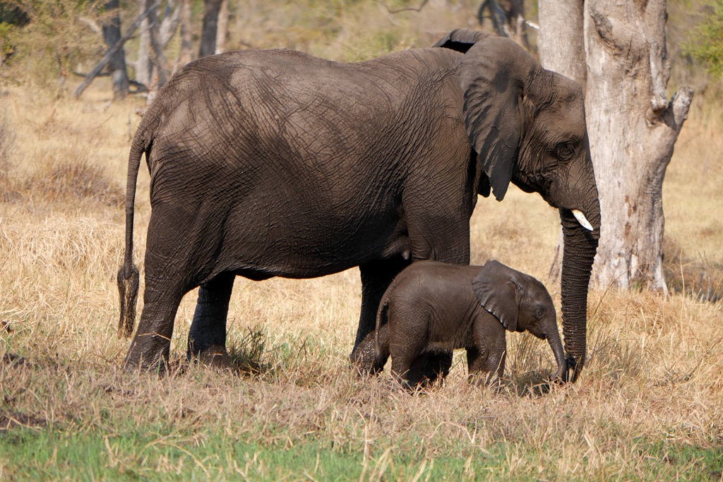 Danach sind wir wieder zur Hunters Road gewechselt, in der Hoffnung, dass ja alles nur besser werden kann. Anfangs war es das auch, aber eben nur anfangs. Nach weiteren 35 nervenden Kilometern haben wir uns dann auf einer breiten, schnurgeraden Schneise zwischen zwei Forstbereichen, unter einem großen Baobab, unser Schlafplätzchen ausgesucht. Wenig später, wir hatten uns gerade gemütlich zum Abendbrot hingesetzt, glaubte ich Stimmen im Wald zu hören. Das konnte ja nur am anstrengenden Tag liegen, immerhin waren wir über 20 km von der nächsten richtigen Straße entfernt. Als aber dann Manuela auch Stimmen hörte, war „Alarmstufe ROT“ angesagt. Es war schon fast dunkel und an Weiterfahren war nicht zu denken. Also Licht aus und ganz leise die Nacht überstehen. Hoffentlich sind es keine Wilderer! Am nächsten Morgen klärte sich der Spuk dann aber auf, als wieder zwei bewaffnete Uniformierte neben unserem Auto auftauchten, ein Dritter sicherte in einiger Entfernung. Es war wieder eine Anti-Wilderer Einheit und sie waren sichtlich erleichtert, als sie nur zwei Touris entdeckten. Ihr Camp war nur etwa 100 m von uns entfernt, mitten im Wald. Unverständlich nur, dass uns diese „Spezialisten“ nicht schon am Vortag entdeckt hatten. Von ihnen haben wir uns aber dann doch zum Abbruch des Unternehmens „Hunters Road“ überzeugen lassen, da sie uns erzählten, dass die Piste so überaus schlecht bleiben würde. Ihre Alternative, auf der Schneise auf der wir genächtigt hatten, wieder bis zur Hauptstraße zu fahren, war aber auch nicht wirklich gut. Für die 22 km brauchten wir dann auch wieder 2 Stunden und 15 Minuten. Die etwa 100 km bis zum eigentlichen Ausgang der Hunters Road auf die A33 vergingen, nun wieder auf Asphalt, scheinbar wie im Flug. Hier wollten wir uns unbedingt noch mal den Zustand der Piste am Ausgang anschauen, sind aber nur etwa 1,5 km weit gekommen. Nicht etwa, weil der Zustand zu schlecht gewesen wäre, sondern, weil wir etwas abseits der Piste eine Senke mit mehreren Wasserlöchern entdeckten. Diese Stelle entpuppte sich als der Elefanten Hot Spot an sich. Es war da so schön spannend, mit fast rund um die Uhr Elefanten um uns, dass wir gleich 2 Tage dort geblieben sind. Am ersten Abend hatten wir zudem noch folgendes Naturerlebnis: Im Westen ging die Sonne wie ein Feuerball gerade unter, als gleichzeitig im Osten glutrot der Vollmond aufstieg. Wir können uns nicht erinnern das so schon einmal erlebt zu haben.