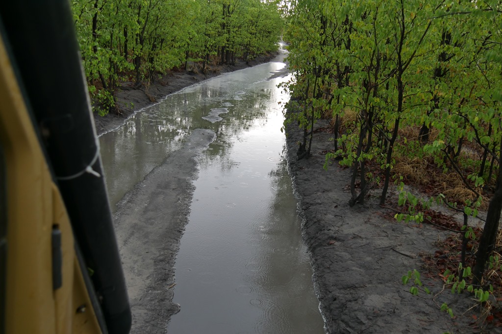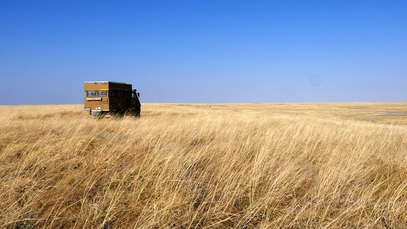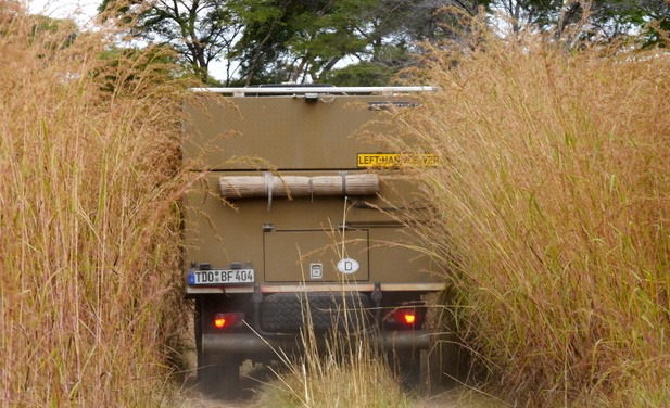 Unerträglich wurde es dann im Bereich des Kazumo Pan NP (auf simbabwischer Seite). Hier verhinderte dann noch meterhohes Schilfgras (über 2,50m hoch) den Sichtkontakt zum Boden und man polterte praktisch im Blindflug von einem Loch zum anderen Loch.