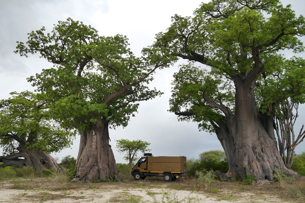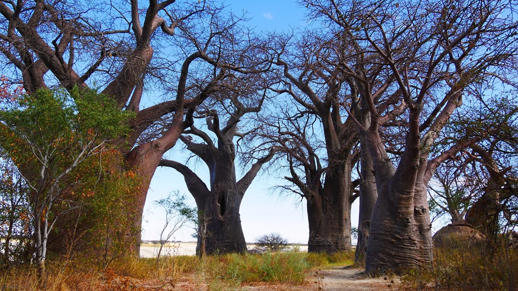 Dieses gute Urteil können wir aber leider für den Nxai Pan NP, welchen wir am nächsten Tag besuchten, nicht vergeben. Nachdem man das Eingangstor passiert hat, muss man erst einmal fast 30 km tiefsandige Piste bis zu einem zweiten Eingang bewältigen. Hier erwarteten uns nun von noch aus der Regenzeit zerfahrene und einmal mehr, nicht wieder hergerichtete Pisten. Das wäre ja alles noch zu verkraften gewesen, wenn uns der Park mit der beworbenen Menge von Tieren entschädigt hätte. Das war aber, bis auf eine Herde Giraffen und einem einsamen Gnu, leider nicht der Fall. Landschaftlich ist der Bereich der mit reichlich Gras und einigen Bäumen bewachsenen Nxai Pan allerdings absolut sehenswert. In mir hat sie sofort Kindheitserinnerungen an den uralten Film „Die Serengeti darf nicht sterben“ geweckt. Ich denke, wir waren einfach zur falschen Zeit hier. Die Regenzeit zieht sicherlich mehr Tiere zu dem dann frischen Gras. Ein wirklicher und jahreszeitlich unabhängiger Höhepunkt hier im Park, ist die Gruppe der „Baines Baobabs“! Diese Gruppe, 7 riesiger Baobabs, gehört zu den beeindruckendsten Baumgruppen in ganz Afrika. „Unsterblich“ machte sie der Maler und Forschungsreisende John Thomas Banes (1879-1933), ein Weggefährte Livingstones, mit seinem berühmten Bild dieser Bäume, welches er 1862 malte. http://goo.gl/images/BcsvMU  Bemerkenswert hierbei: Der eine der sieben Bäume, welcher umgefallen und offensichtlich überlebt hat, ist auf diesem Bild auch schon am Boden liegend dargestellt. Tipp: Nicht den gleichen Fehler machen wie wir. Die Baumgruppe sollte man am Ende der Tour einbauen, da sie dann sicher viel schöner im weichen Nachmittagslicht zur Geltung kommen. Noch besser, man bucht die einzige Campsite mit Blick zur Baumgruppe (Nr.1), dann hat man sie bei Sonnenuntergang und bei Sonnenaufgang. Sicherlich ein unvergessliches Erlebnis!!!