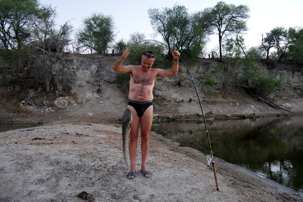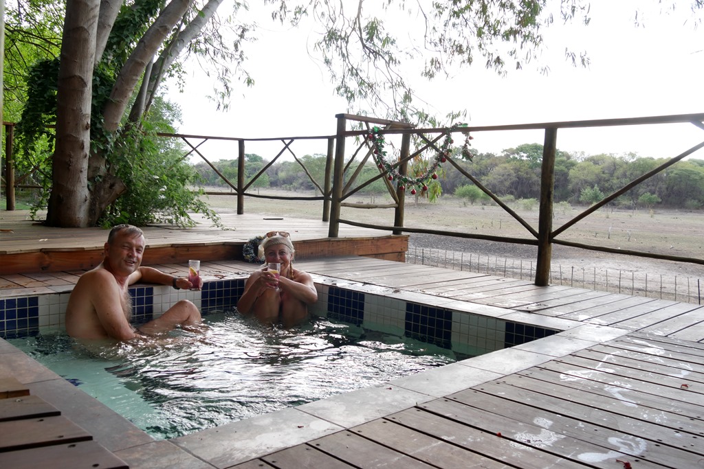 Nach nunmehr 8 wilden Übernachtungen stand uns nun der Sinn nach etwas Zivilisation und außerdem brauchten unsere Vorräte einschließlich Diesel und Wasser dringend eine Auffrischung. Dazu haben wir uns 4 Tage Campsite in Maun gegönnt. Diese gehört zu einem Hotel, liegt ruhig am Fluss, hat Pool, Restaurant und eine kleine Bar. Also genau richtig, um sich mal wieder von den Errungenschaften der Zivilisation verwöhnen zu lassen. Es gibt sogar im Fernsehen einen Sportkanal, sodass wir hier in der Bar die Halbfinals der Fußball WM schauen können. Und das auch noch völlig entspannt, denn wir sind ja schon lange nicht mehr dabei.