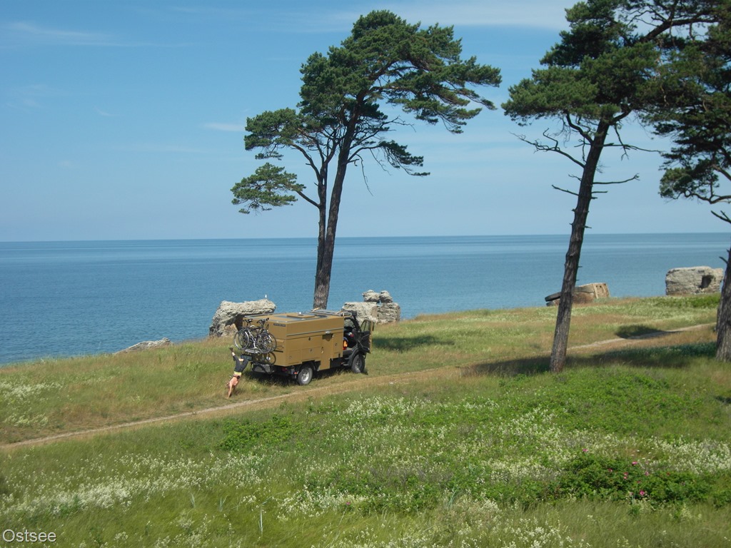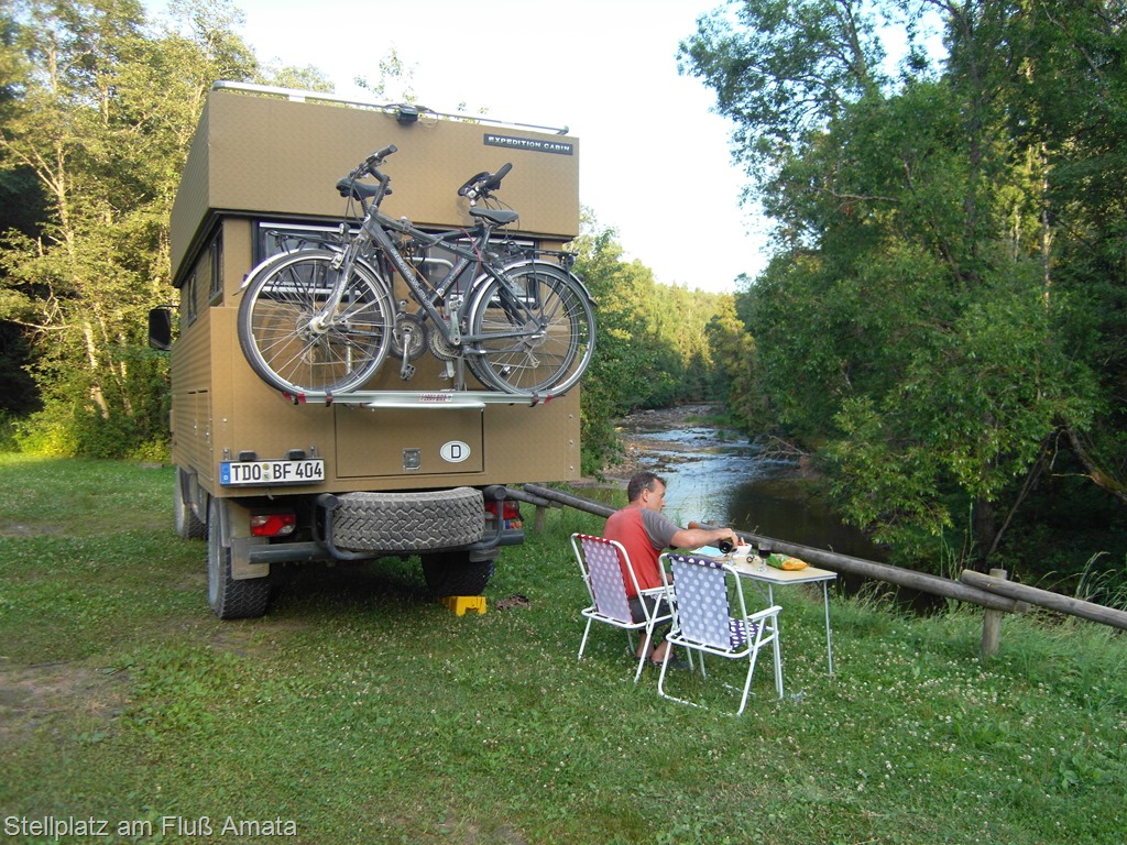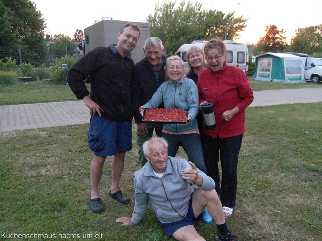 Am Abend haben wir einen sehr netten und feuchtfröhlichen Grillabend mit unseren Campingplatz-Nachbarn organisiert. Dabei waren ein Paar aus Bayern, zufällig auch mit einem “Bremach” (welch Freude) und ein Ehepaar vom Bodensee mit einem “James Cook”-Camper. Letztere waren so begeistert von dieser Idee, dass sie ihren Grill, welcher seit fünf Jahren nicht mehr im Einsatz war, gleich mehrfach fotografieren mussten. Zur großen Begeisterung aller gab es dann zu später Stunde noch Erdbeerkuchen aus unserem Backofen.