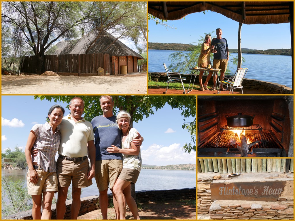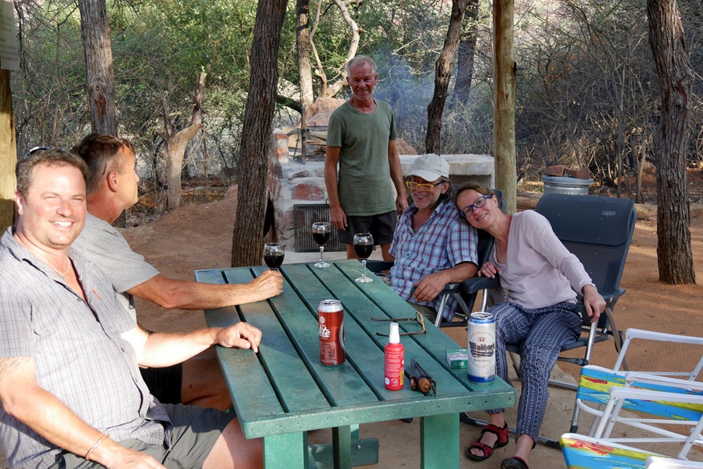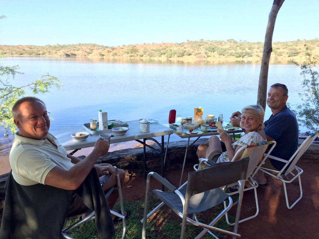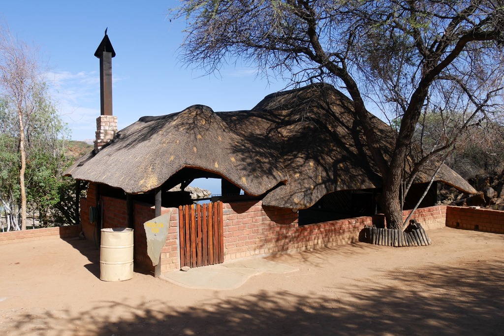 Wenige Kilometer vor Rehoboth gibt es ein Freizeit Resort mit Campingplatz am Oanob Stausee. Das möchte sich meine liebe Frau unbedingt ansehen. Ich verspreche mir eher nicht viel davon, weil ich Stauseen, speziell hier in Afrika, wegen des ständig niedrigen Wasserstandes und der deshalb unschönen Uferbereiche, eher nicht so mag, und Ferien Resort, noch dazu im Einzugsbereich von Windhoek, klingt nach Massentourismus. Ich lasse mich also belatschern – und habe es nicht bereut! Uns gefiel es da so, dass wir uns spontan entschlossen, dort eine Nacht zu bleiben. Der Stausee hatte zwar, wie nicht anders zu erwarten, einen niedrigen Wasserstand. Da aber der Uferbereich weitestgehend felsig ist, kann man trotzdem über mehrere Zugänge zum Wasser gelangen, und zu meiner großen Freude sogar darin schwimmen! Schwimmen kann man zwar auch in einem Pool und sich sogar an einer Pool Bar auf im Wasser stehenden Barhockern einen Drink servieren lassen, aber da ziehe ich mir dann doch eher den See vor. Ist eben Geschmackssache. Der Campingplatz ist wirklich toll, die Plätze sind weit genug auseinander und sehr individuell ausgestattet und angelegt. Die Preise sind für das was geboten wird mehr als moderat und liegen, je nach Lage und Ausstattung, pro Person und Nacht, zwischen 80 und 160 NAD. Die schönsten Plätze liegen natürlich am Wasser und haben alle einen eigenen Zugang zum Wasser und eine riesige, überdachte Terrasse mit tollem Blick über den See. Wenn man solch einen Platz ergattern kann, dann unbedingt nehmen, Sch…. auf die paar Euro Unterschied!!!