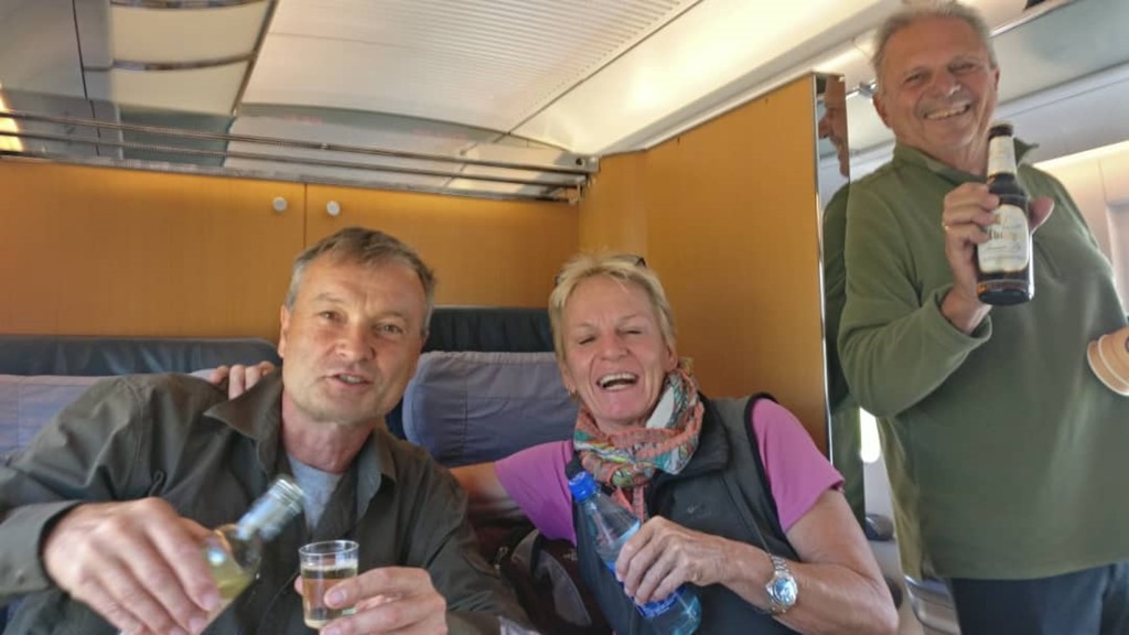 Auf dem weiteren Weg zum Fish River Canyon übernachten wir noch einmal ruhig und sicher auf dem Parkplatz vom Krankenhaus in Keetmanshoop. Etwa 40 km nach Keetmanshoop durchquert man den Naute Nationalpark. Gleichnamiger Stausee ist weniger sehenswert, aber ein kurzer Stopp an der „Naute Kristall Distillery“ lohnt allemal. Hier kann man für 50 Rand an einer sehr interessanten Wein- und Gin Verkostung teilnehmen. Ich hab natürlich immer mal nur kurz an Manuelas Glas genippt. Aber sie hatte trotzdem ihren Spaß mit ihrem neuen chinesischen Freund.