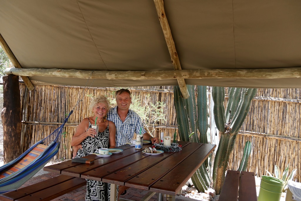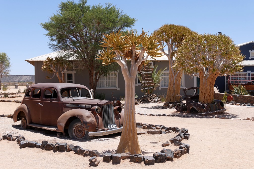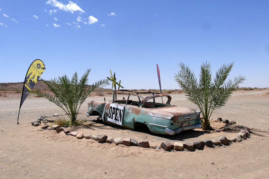 Da kam doch der anschließende Besuch der nahe gelegenen Gaststätte im „Hobas Camp“ gerade richtig. Diese originelle Kneipe sollte man nicht verpassen. Hier kann man sein kühles Bier inmitten von Oldtimern und anderen historischen Sammelstücken ganz gemütlich und entspannt genießen.