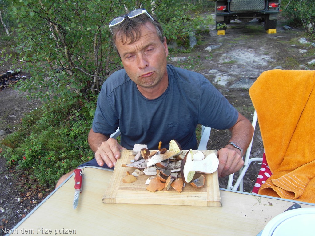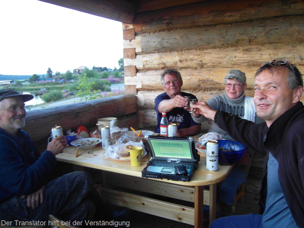 Wir saßen bei einem Glas Abschiedswein und verfassten gerade obigen Tagesbericht, als plötzlich ein uniformierter russischer Grenzbeamter unseren Frieden störte. Dieser machte uns mit sehr bestimmendem Ton begreiflich, dass wir uns hier im Grenzgebiet befinden und dieses auf schnellstem Wege Richtung Norwegen verlassen müssen. Auch der Hinweis von Matthias, dass er Alkohol getrunken hat, half nichts! Nach kurzem Telefonat mit seiner Dienststelle wurden wir von einem, der mittlerweile 4 Beamten, zur Grenze begleitet. Dort ging das Theater erst richtig los. An der Grenze angekommen, warteten schon 5 Grenzbeamte auf uns. Der ranghöchste Offizier zählte uns nochmals, in strengem dienstlichen Ton, unsere Missetaten auf. Jetzt kam, was kommen musste: Unser Auto wurde über 2 Stunden von diesen 5 Beamten völlig durchsucht. Ich wurde zuvor in einen separaten Raum gebracht und Matthias musste allein diese Prozedur über sich ergehen lassen. Somit hatte er keinen Überblick, wer was und wo im oder am Auto tat. Gegen Ende der Untersuchungen geschah etwas Merkwürdiges: Als Matthias mit einem jüngeren Beamten für kurze Zeit allein war, gab dieser ihm, mit leisem Ton, mehrfach zu verstehen, dass wir doch bitte zur ersten Übernachtung in Norwegen in ein Hotel gehen sollten. Diese Bemerkung lies bei uns sämtliche Alarmglocken schrillen. Wir beschlossen keinesfalls im ersten Ort zu bleiben und suchten uns aus Sicherheitsgründen, zumindest für die erste Nacht, einen Campingplatz in größerer Entfernung. Ca. 10 Km nach der Grenze überholte uns eine russische Limousine mit hohem Tempo und setzte sich dann, mit der gleichen Geschwindigkeit (wie wir fuhren), vor uns. Daraufhin hielten wir gleich an einem Motel an, um abzuwarten was passiert. Kurz darauf erschien eine 2. russische Limousine, hielt kurz auf unserer Höhe und fuhr weiter. Nach ca. 15 Minuten fuhren wir weiter. Kurz darauf sahen wir die gleiche Limousine auf einem etwas versteckt liegenden Parkplatz stehen. Um uns zu vergewissern (man bildet sich ja in solchen Situationen manchmal auch viel ein), ob es wirklich die gleichen Personen sind, fuhren wir in die Ausfahrt dieses Parkplatzes hinein. In diesem Moment kam uns dieses Fahrzeug mit den gleichen Personen (sie waren sichtlich überrascht) entgegen. Diese fuhren dann mit hoher Geschwindigkeit davon. Jetzt hatten wir die Gewissheit, dass hier irgendetwas nicht stimmte. Somit war klar, so schnell wie möglich auf einen Campingplatz. (Das erste Mal in diesem Urlaub wirklich Angstgefühle). Diesen fanden wir dann auch – es war mittlerweile 0:45 Uhr. So jetzt nur noch alles verschließen. Am nächsten Morgen der totale Schock: Die Beifahrertür unseres Autos stand offen. Soviel zur Sicherheit auf einem Campingplatz. Es fehlte aber nichts. Nun kann sich jeder selbst zusammenreimen, was wir für wen unwissentlich über die Grenze transportiert haben.