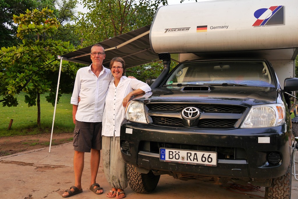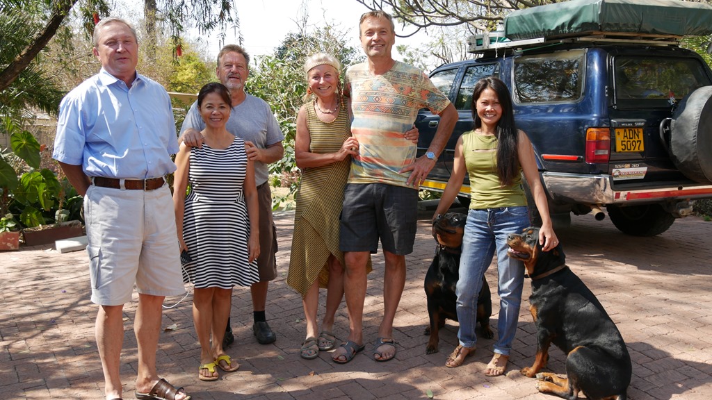 Zum Grenzübertritt nach Simbabwe hatten wir dieses Mal Chirundu gewählt. Es lief relativ zügig innerhalb einer Stunde ab. Hier ist zu beachten, dass alle Grenzformalitäten auf Simbabwe Seite erledigt werden müssen. Also nicht erst bei den Gebäuden auf Sambia Seite aussteigen, (hier wird man nur von allerlei Händlern belästigt) sondern gleich über die Sambesi Brücke nach Simbabwe rollen. In Simbabwes Hauptstadt Lusaka stand nun schon der nächste Besuch an. Es ist schon unglaublich, wie viel interessante Leute man so auf Reisen kennen lernt. Für uns sind diese Kontakte vor allem eine wichtige Fundgrube für Hintergrundwissen über das jeweilige Land und natürlich auch eine willkommene Abwechslung vom Buschleben. Wolfgang und Tessie hatten wir bei unserem Freund in Kariba kennengelernt. Sie leben schon viele Jahre in Harare auf einem traumhaften Grundstück am Rand der Stadt. Auch Hugo aus der Schweiz mit seiner philippinischen Frau Mari Tes waren da. Sie hatten ihr Auto bei Wolfgang auf „Langzeit Parkplatz“ und wollten in wenigen Tagen zu ihrer Sambia – Malawi Tour aufbrechen. Also eine tolle Runde um, Reiseerfahrungen auszutauschen. Es waren zwei wunderschöne Tage in Harare, doch wenn wir uns noch Südafrika ohne Zeitdruck anschauen wollen, dann müssen wir uns von hier losreißen.