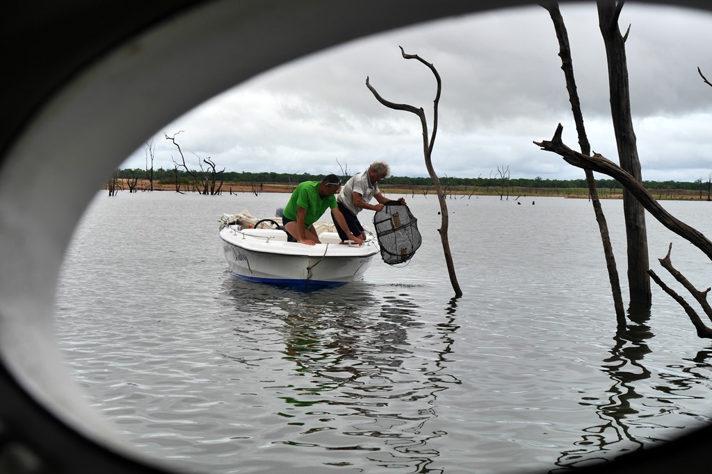 Jedoch wollen wir nicht nur stur Richtung Südafrika durchfahren, wir haben nämlich in Simbabwe noch „eine Rechnung offen“. Auf unsere letzten Reise konnten wir den Gonharezhu Nationalpark im Süden von Simbabwe nicht mehr besuchen, da uns die Regenzeit nach Mosambik vertrieben hatte. Nun liegt er fast auf dem Weg und so wollen wir diese Chance nutzen und uns für vier Tage im Park umschauen. Jedoch am Park Gate will uns der Ranger einreden, dass ein Fahrzeug unserer Größe nicht für diesen Park zugelassen sei. Da uns das aber noch nie passiert ist, lassen wir nicht locker. Ich zeige ihm die Papiere, aus denen ersichtlich ist, dass unser Fahrzeug bis 3.5 Tonnen zugelassen ist, und sage ihm, dass wir diesbezüglich in noch keinem Park Schwierigkeiten hatten. Auf meine Frage, ob sich die Begrenzung hier im Park auf Gewicht oder Abmessung bezieht, konnte er mir nicht konkret antworten. Stattdessen zeigte er mir eine E-Mail Anfrage von einem 4×4 Iveco, welche auch abgelehnt worden sei. Daraufhin wollten wir den Chef sprechen. Der sei für 2 ! Stunden in der Mittagspause. – Er möge ihn bitte anrufen. – Anruf ergibt kein positives Ergebnis – O. K., wir werden warten, bis der Chef seine wohl verdiente Pause beendet hat. – Daraufhin 2. Anruf beim Chef – Alles in Ordnung, war ein Missverständnis, wir dürfen rein. – Geht doch!!! Als wir auf unserer ersten gebuchten Campsite eintreffen, sehen wir wie gerade ein „Herrenausflug“ von fünf Elefantenbullen gemächlich durch den Runde Fluss watet, genau in unsere Richtung. Wir blieben gleich im Fahrerhaus sitzen und schauten gebannt zu, wie diese fünf Riesen die Uferböschung zur Campsite erklommen, um sich anschließend an den Bäumen rund um unser Auto gütlich zu tun. Nachdem sie etwa nach einer Stunde immer noch um uns herum trotteten und unser Magen nach selbst gebackenem Erdbeerkuchen und Kaffee lechzte, musste eine Lösung her. Um unser Kabinendach zu heben, müssen wir den Motor starten. Mal schauen, was dann passiert. Nicht viel, aber immerhin so viel, dass die Jungs einige Meter weggingen und wir unser Kaffeepäuschen mit Elefantengesellschaft abhalten konnten. Die Elefanten sollten übrigens nicht die einzigen Besucher bleiben: Andere Camper kamen zwar nicht mehr, obwohl wir diese Campsite richtig toll fanden, aber Impalas, Kudus und Affen waren dann noch abendliche Gäste. Die nächsten beiden Nächte hatten wir auf der Chinguli Campsite geordert. Diese liegt landschaftlich sehr schön mit Blick in einen felsigen Abschnitt des Runde River. Campsite Nr. 3 ist übrigens die mit dem schönsten Blick. Es gibt hier allerdings, sicherlich gerade wegen der vielen Felsen, kaum Tiere. Überhaupt hatten wir auch dann bei unseren Ausflügen im südlichen Bereich des Runde River und im Bereich der herrlichen Chilojo Cliffs verhältnismäßig wenig Tiersichtungen. Dafür waren zwei dieser Sichtungen fast etwas zu intensiv. Wir hatten schon aus unterschiedlichen Quellen gehört, dass die Elefanten in dem NP zum Teil recht aggressiv sein sollen. Man vermutet, dass das eine Folge der langjährigen Wilderei sein soll. Wir hatten noch nie erlebt, dass ein Elefant einen Scheinangriff auf uns gestartet hat. Das sollte sich diesmal ändern: Wir befahren eine weitläufige Landschaft mit nur wenigen Bäumen und Büschen, also mit viel Platz für alle. Ein Elefantenbulle „beschäftigt“ sich gerade mit einem Busch. Wir halten etwa in 30 m Entfernung, etwas weiter als sonst, da er uns schon durch heftiges Kopfschütteln Einhalt geboten hatte. Also Motor aus und Beruhigung der Situation abwarten. Das funktionierte schon hundertfach. Diesmal aber nicht. Er „tat“ immer nur so als sei er beschäftigt, um dann mit einer gewaltigen Körperdrehung auf uns loszustürmen. Das tat er dann insgesamt 3 Mal und die Stopps endeten immer kürzer, am Ende keine 10 Meter mehr, vor unserem Auto. Also Rückwärtsgang und schleunigst 50 Meter zurück. Damit schien er zufrieden und trottete weiter. Als uns dann der Abstand groß genug erschien, dass er uns im Vorbeifahren nicht mehr erwischen konnte, setzten wir unsere Fahrt fort. Etwa auf gleicher Höhe setzte er aber nochmals einen Sprint an und verfolgte uns mit einer riesigen Staubwolke und lautem Trompeten. Nur diesmal hatte er keine Chance gegen uns, aber er hat den Sieg errungen. Damit sollte aber nicht genug mit solchen Abenteuern sein. Wir hatten uns gerade von dem Schreck erholt, als nur wenige Kilometer weiter der nächste auf Streit gebürstete Elefantenbulle uns den Weg versperrte. Wild gestikulierend rannte er jedes Mal Richtung Weg, immer dann, wenn wir glaubten, er wäre weit genug entfernt und hätte uns vergessen. Da wir keine Lust mehr auf diese blöden Spielchen hatten und ein anderer Weg zur Alternative stand, haben wir ihn gewinnen „lassen“. Der letzte Tag brachte dann die Lösung, weshalb im Bereich des Runde River weniger Tiere zu sehen waren, als von uns erwartet oder erhofft. Vor allem hat uns verwundert, dass wir ausschließlich männliche Elefanten gesehen hatten. Die große Masse der Tiere hielt sich nämlich im Bereich des Zusammenflusses von Runde River und Save River und an der Tembwahata Pan auf. An dieser Pan hatten sich scheinbar alle Elefantenfamilien des Parks versammelt. Es war ein ständiges Kommen und Gehen und an einem beliebigen Zeitpunkt haben wir 111 Stück gleichzeitig gezählt. Zebras und natürlich viele Wasservögel rundeten das paradiesische Bild noch zusätzlich ab. Sehr empfehlen können wir auch die scheinbar wenig befahrene und urwüchsige Strecke von dieser Pan zum „Gayiseni Camp” und von da zum östlichen Gate des Parks. Diese Piste ist sehr abwechslungsreich, sowohl landschaftlich, als auch seitens der Tierwelt.