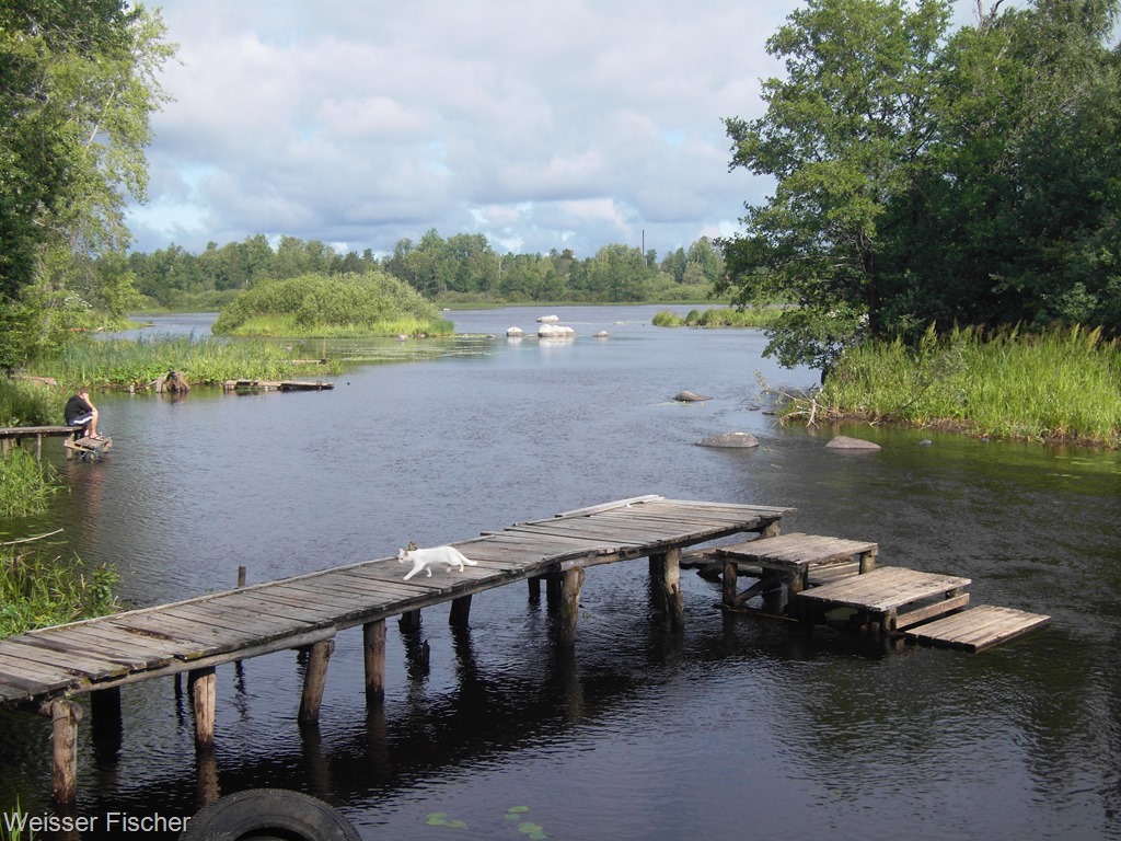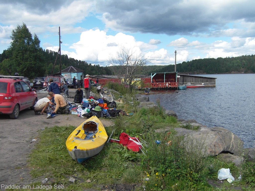 Sind dann weiter um den Ladoga See gefahren – haben dabei aber das Wasser nur sehr selten gesehen, da der See durch dichte Bewaldung selten zugänglich ist. Stehen nun hier am Dorfrand, an einer Paddelboot– und Angler-Einsatzstelle. Es gab viel zu sehen, denn die Russen sind begeisterte Angler und Paddler.