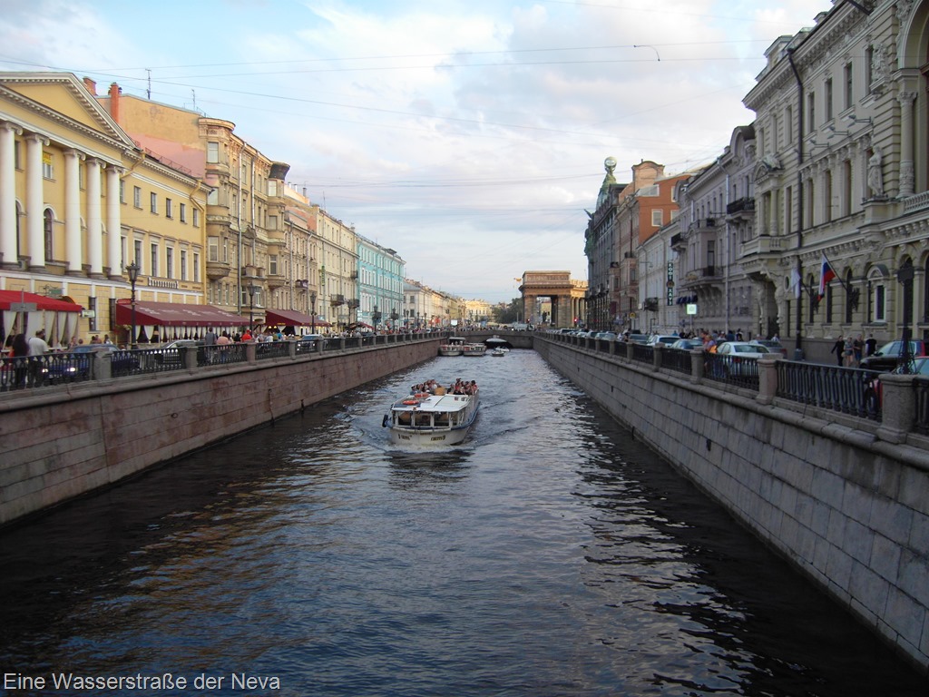Sie ist mit ihren fast 5 Mio. Einwohnern die zweitgrößte Stadt Russlands. Im und um das Zentrum der Altstadt besitzt diese Stadt hochkarätige Museen, Paläste, Prachtbauten, Kathedralen, Klöster und großartige Plätze in großer Anzahl. Um einen kleinen Einblick davon zu bekommen, unternahmen wir eine Bootsrundfahrt entlang der großen und kleinen Inseln, zwischen denen die Wasserläufe der Neva und Kanäle liegen. Deshalb wird Sankt Petersburg mit seinen über 500 Brücken auch als “klein Venedig des Nordens” bezeichnet.