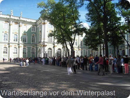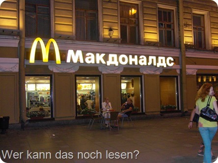In Petersburg muss man die Uhr 2 Stunden vor stellen. Außerdem sollte man, zumindest hier, seine Vorstellung vom armen Russen über Bord werfen! Hier scheinen sich die Reichen des Landes zu versammeln. Trotz Chaos auf den Straßen und Parkplatznot, gibt es fast nur große und teure Autos. In diesen werden die Russen, nach ihrem Fahrstil zu urteilen, dann auch wieder zu “Helden” – diesmal aber nur der Straße. Übrigens, Russland ist, zumindest bis jetzt, kein billiges Reiseland! Einziger Trost ist der Dieselpreis von traumhaften 75 Cent/Liter.