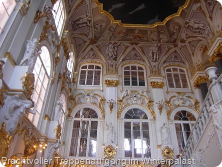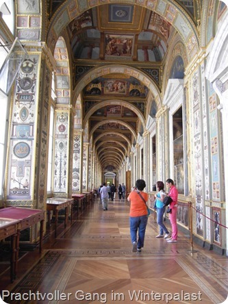 Nachdem wir nun schon 3 Tage – anstatt den ursprünglich geplanten 2 Tage – hier sind, wurde nun noch ein 4. Tag angehängt. Denn man kann diese Stadt unmöglich verlassen, ohne die Eremitage im Winterpalast, wo einst unter anderem Katarina die Große residiert hat, besichtigt zu haben. Die Eremitage ist mit über 3 Mio. Exponaten eine der größten Kunstsammlungen der Welt. Neben der Pracht der Räumlichkeiten selbst, hängen hier Gemälde von unvorstellbarem Wert. Bilder von Rembrandt, Rubens, Vincent van Gogh, Picasso, Leonardo da Vinci, etc., hängen hier dicht an dicht.