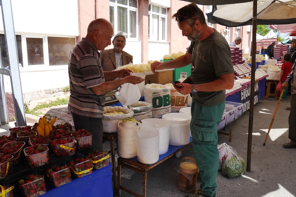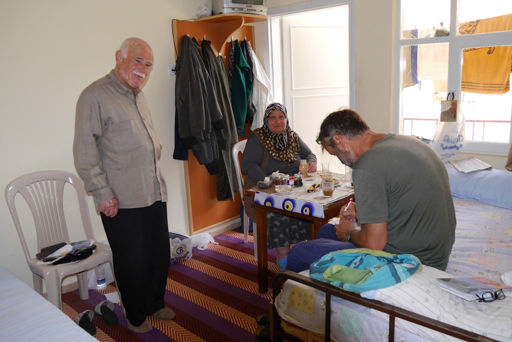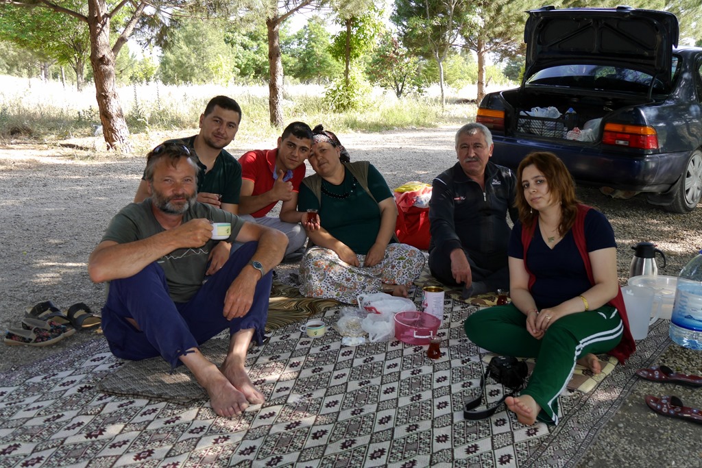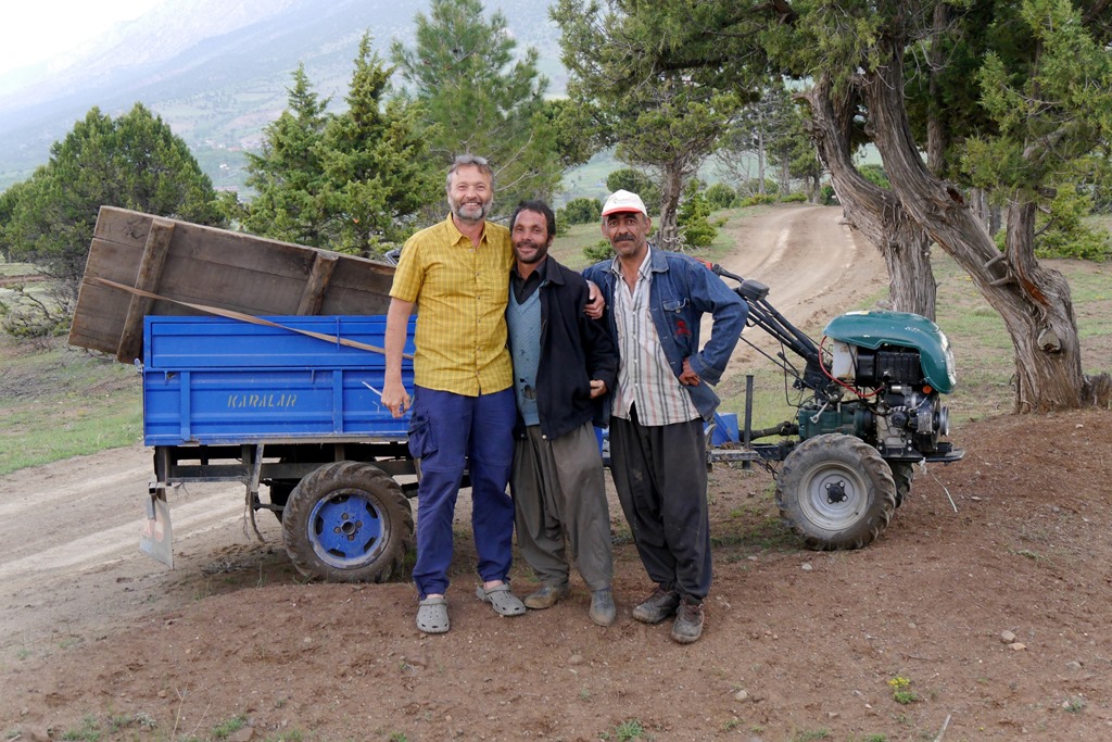 Da für den nächsten Tag eine Bergtour geplant war, es aber für den Nationalpark weder Wanderkarten noch ausgeschilderte Wege gibt, musste irgendwie ein Bergführer her. Deshalb noch mal zurück nach Ovacik. Beim Einkauf sprach uns ein älterer Herr an. Nach den üblichen Fragen nach dem woher und wohin waren wir mit unserem Türkisch am Ende und er nahm mich (Matthias), wie hier so üblich und mir so “angenehm”, bei der Hand und führte mich durchs halbe Dorf zur nächsten Teestube. Erst dort erkannten wir den Grund. Da saß sein Deutsch sprechender Kumpel beim Brettspiel. Dieser wiederum organisierte uns Ismail, einen äußerst rüstigen Rentner, welcher 33 Jahre im Ruhrgebiet unter Tage gearbeitet hat und demzufolge gut deutsch spricht, als Wanderführer. Ist das nicht Gastfreundschaft.