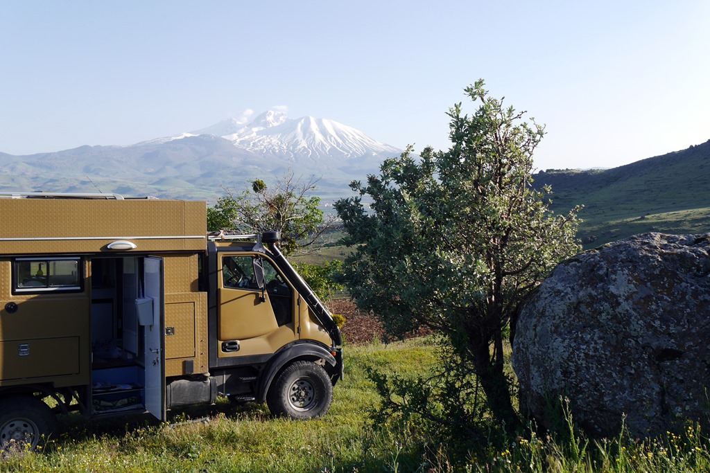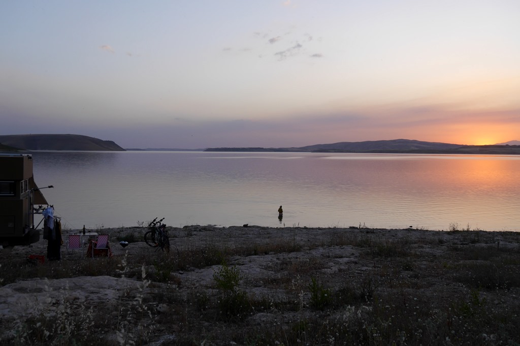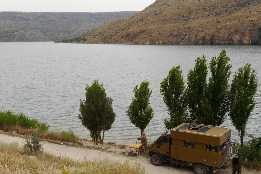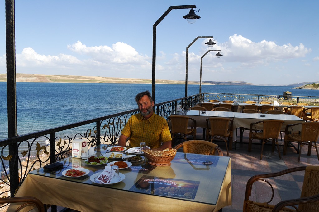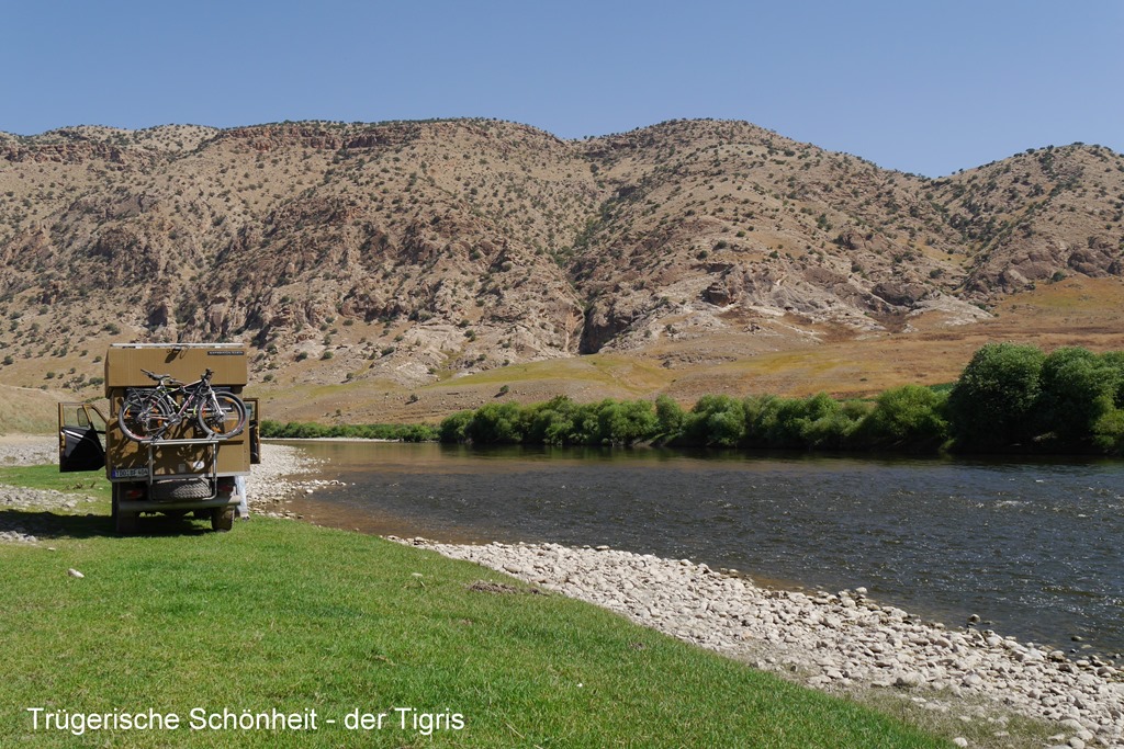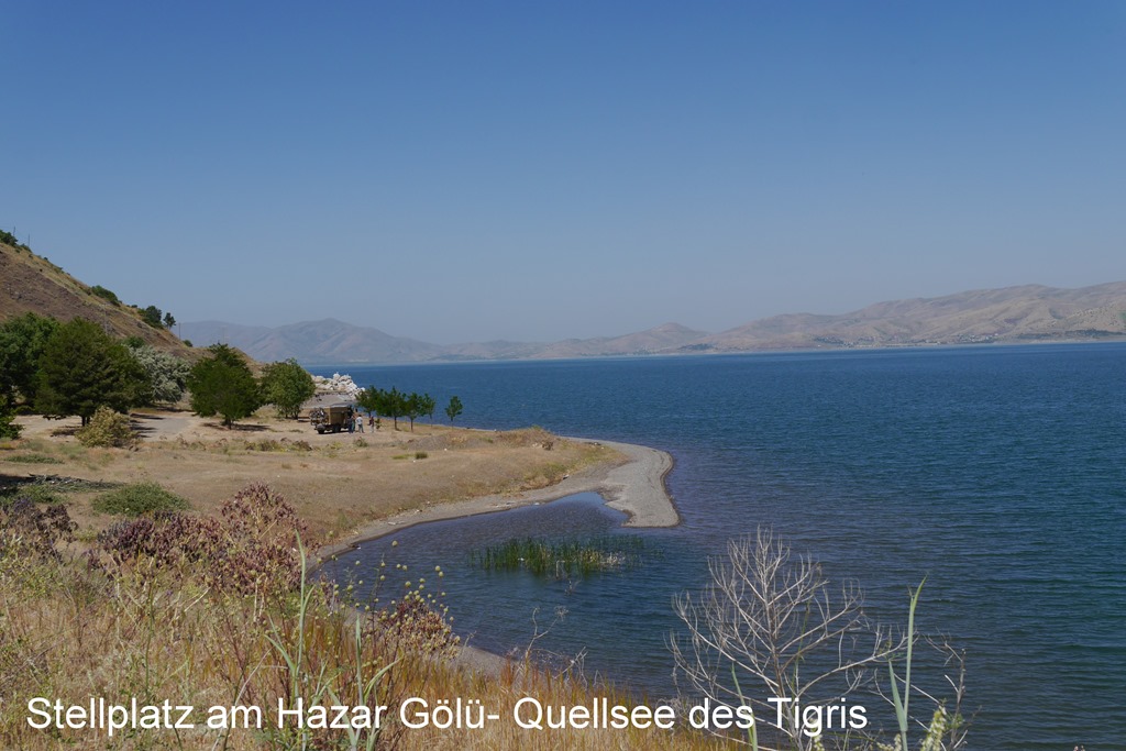 Von Ergani führt uns die Straße dann wieder nordwestlich Richtung Elazig. Hier finden wir für die Nacht, am sauberen Hazar Gölü, dem Quellsee des Tigris, ein lauschiges Plätzchen. Tipp: Den See unbedingt am Südufer befahren, denn hier gibt es, entgegen der Karte und des Navi eine durchgehende, kleine, kaum genutzte, Teerstraße. Diese eignet sich auch, nicht nur wegen der vielen Bademöglichkeiten, zu einer schönen Radtour (ca. 22Km/Strecke) und auf dieser Seite findet man auch mehrere Stellplätze, davon unsere Stellplatzempfehlung. N 38°28`22,1”O 39°25`24,6”