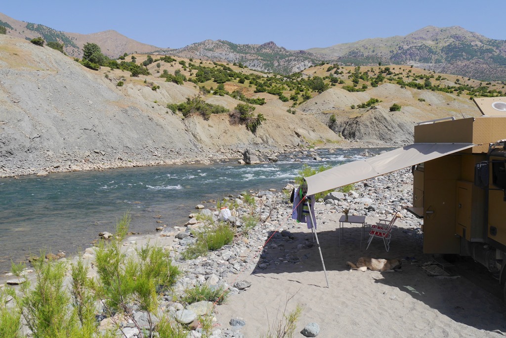 Weiter geht die Fahrt wieder etwas westlich bis Ergani. Es geht durch recht dünn besiedelte Mittelgebirgslandschaft und wir tangieren wieder mehrfach sehr große Stauseen und klare Gebirgsflüsse, welche zu kurzen Badestopps verleiten.