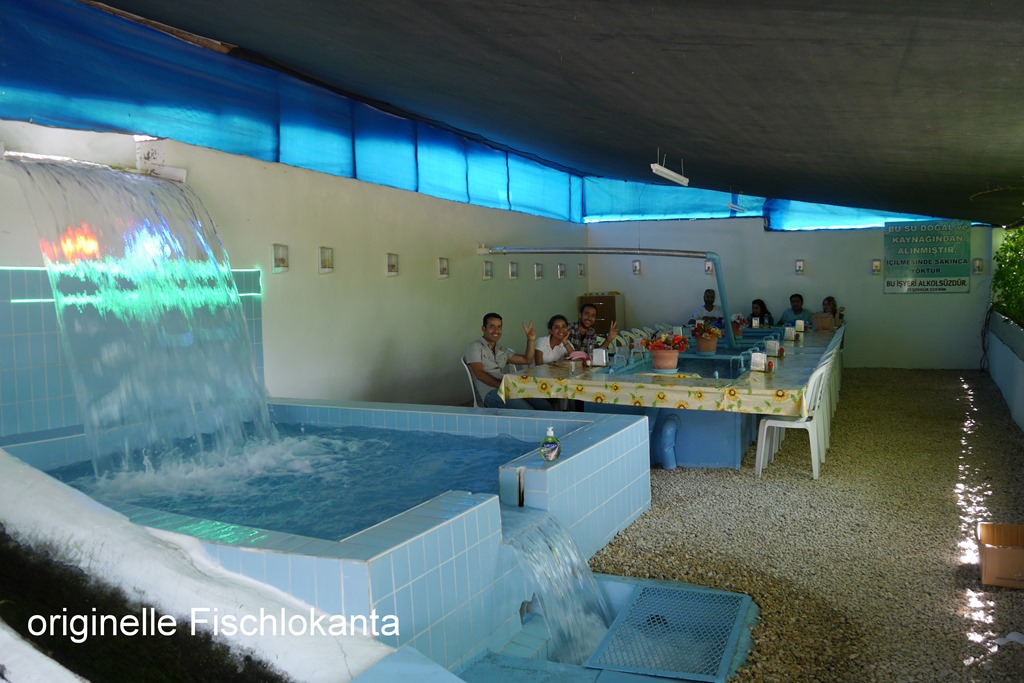 Nur wenige Kilometer nach der Überfahrt, ein Einkehrtipp für Freunde fangfrischer Forellen. Diese kann man sich in einem kleinen, originellen Restaurant munden lassen. Der Bach fließt durch den Gastraum und man sitzt um ein mit Forellen besetztes Becken. Testen konnten wir die Qualität der Gerichte aber leider nicht, da wir gerade kurz vorher gegessen hatten, äußerst ärgerlich. Name des Restaurants: Alabalik Izgara Cesitleri N 38°51`18,0”O 39°20`13,9”