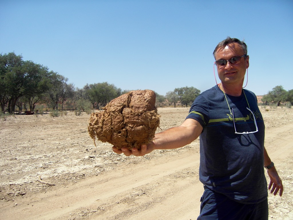 Rettung in der Not war ein Kuhhirte, welcher uns den richtigen Weg zeigte. Etwas oberhalb des Flusses ging es nun wenigstens erst einmal in die richtige Richtung. Das nächste Problem war nun, in dem riesigen, von Dünen und Büschen gesäumten Flussbett, den richtigen (trockenen) Einstieg zu finden. Wir hatten Glück, im zweiten Anlauf gelang uns dieses auf abenteuerlichen Wegen. Danach war alles nur noch ein Kinderspiel, wie auf einer Wüstenautobahn ging es viele Kilometer nach Osten. Am frühen Nachmittag erreichten wir dann Palmwag, den Ort, wo wir vor über einer Woche unsere Tour wegen Reifenproblemen unterbrechen mussten. Hier bleiben wir nun eine Nacht und werden morgen einen zweiten Anlauf zum nächsten Mehrtagestripp ins Hinterland starten.