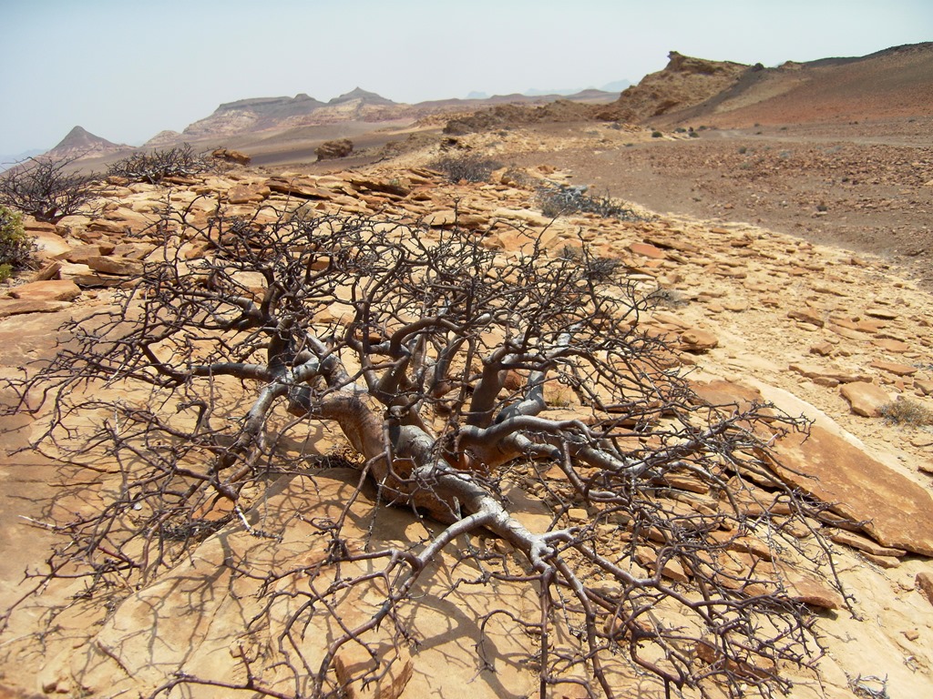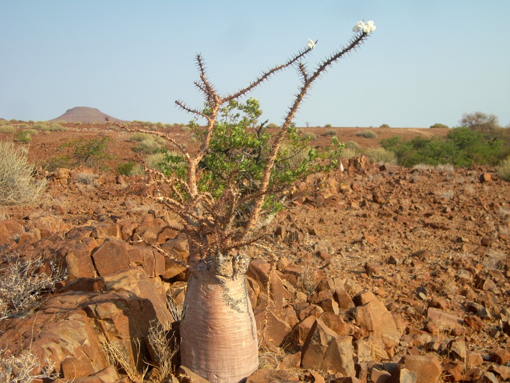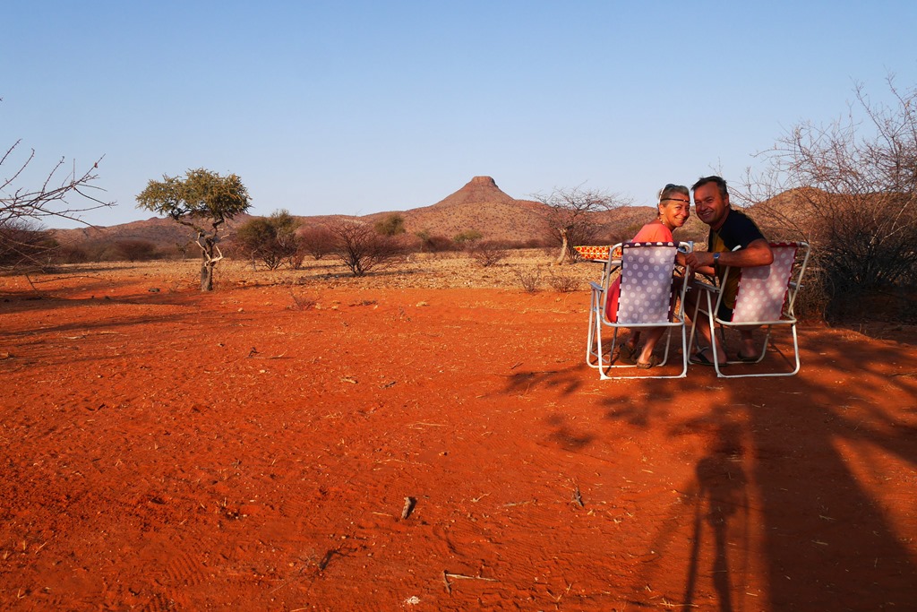 Nach ca. 40 km wieder flussabwärts geht der Trail aus dem Tal heraus Richtung Norden durch wüstenhafte Landschaft und etwa 80 km bis zum Hoarusip River. Wir fuhren aber noch nicht bis zum Fluss, denn die Faszination der Wüste hatte uns wieder ergriffen. So kam uns ein Felsplateau mit traumhafter Aussicht über die Wüste als Übernachtungsplatz gerade recht.