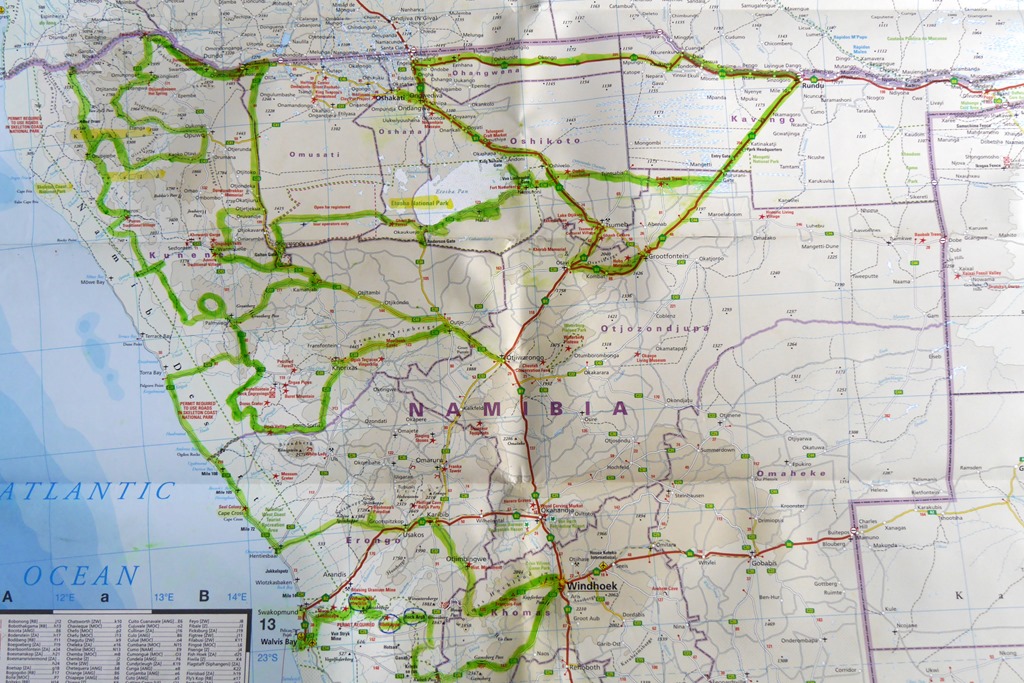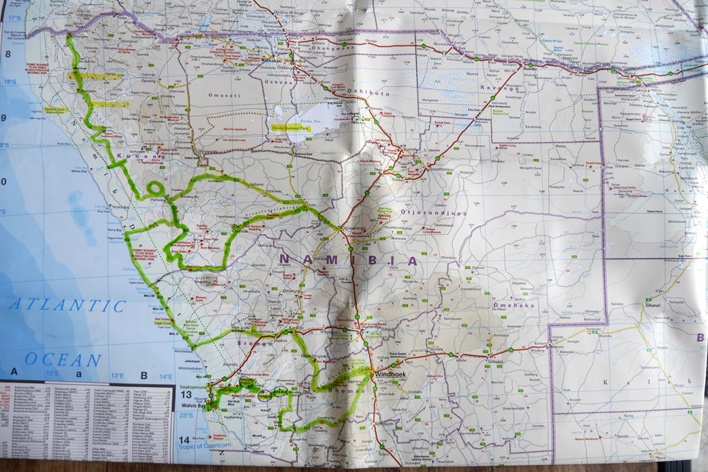 Halbwegs ausgerüstet, aber trotzdem gut motiviert, starteten wir am nächsten Morgen Richtung Norden mit Ziel Kunene River an der Grenze zu Angola. Diese Strecke führt ausschließlich über Trails, das sind eigentlich nur Fahrspuren durch teilweise sehr schwieriges Gelände. Eine Tagesleistung (etwa 6-8 Stunden) von 150 km war schon gut.