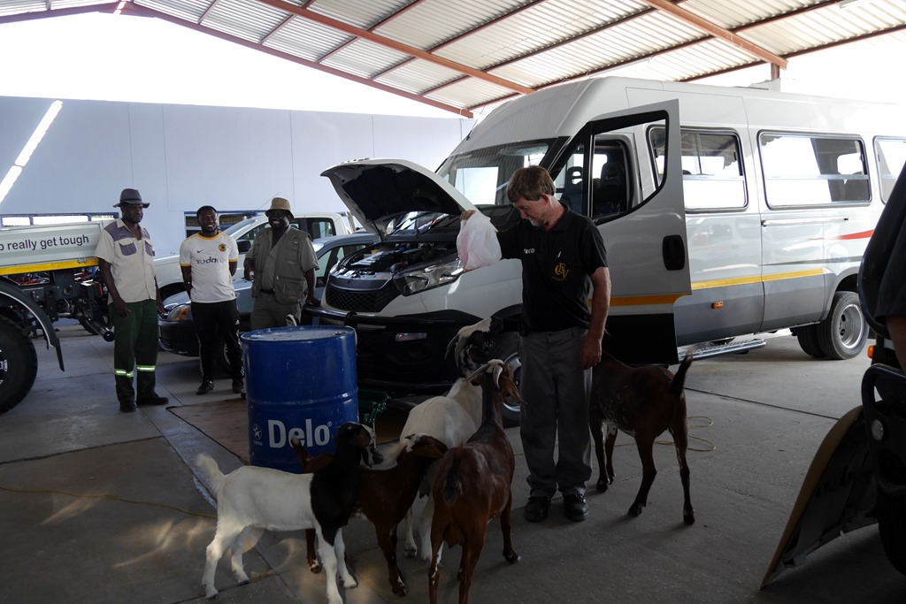 Nach zwei angenehmen Tagen Zwangspause bei Alex in der Mobola Lodge, stehen wir am Montag pünktlich um acht Uhr auf dem Hof einer großen Truckwerkstatt. Wo, natürlich wieder einmal in Rundu. Man weiß Bescheid und zwei Monteure widmen sich auch gleich unserer gebrochenen Blattfeder. Alles lief gut an, doch die Ernüchterung folgte bald. Eine solche Feder ist nicht beschaffbar, auch nicht in ähnlicher Form und man könne mir die Feder nur schweißen. Da uns das in Anbetracht der noch vor uns liegenden Strecke als totaler Unsicherheitsfaktor erschien, nahmen wir mit unserer Servicewerkstatt in Österreich Kontakt auf und bereits nach einer Stunde kam die erlösende Nachricht, dass ein Federpaket zum Versand fertig gemacht ist. An dieser Stelle nochmals vielen Dank an die Fa. Christ in Raab.