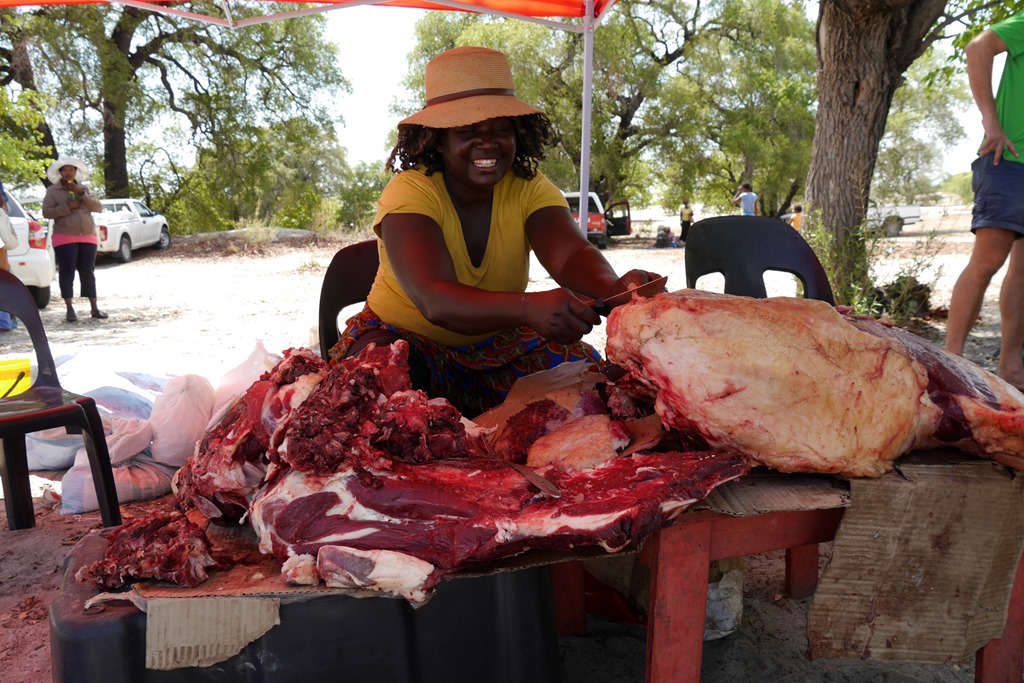 Wir verlassen am 14.12.2016 Katima Mulilo mit Ziel Grenzübergang Botswana. Unser Visum erlaubt uns aber noch einen Tag in Namibia. Was liegt also näher, als noch einen kleinen „Schlenker“ zu machen. Die Karte zeigt westlich, etwa 20 km im „Busch“, einen See, den wir uns anschauen möchten. Der See war dann nicht sonderlich sehenswert und kaum zugänglich, aber wie das oft der Fall ist, sind dann abseits der Hauptpisten die zufälligen Erlebnisse das Salz in der Suppe. So kommen wir in ein Dorf, wo alle Einwohner auf dem Dorfplatz versammelt sind und geduldig auf die staatliche Maismehl Verteilung warten.