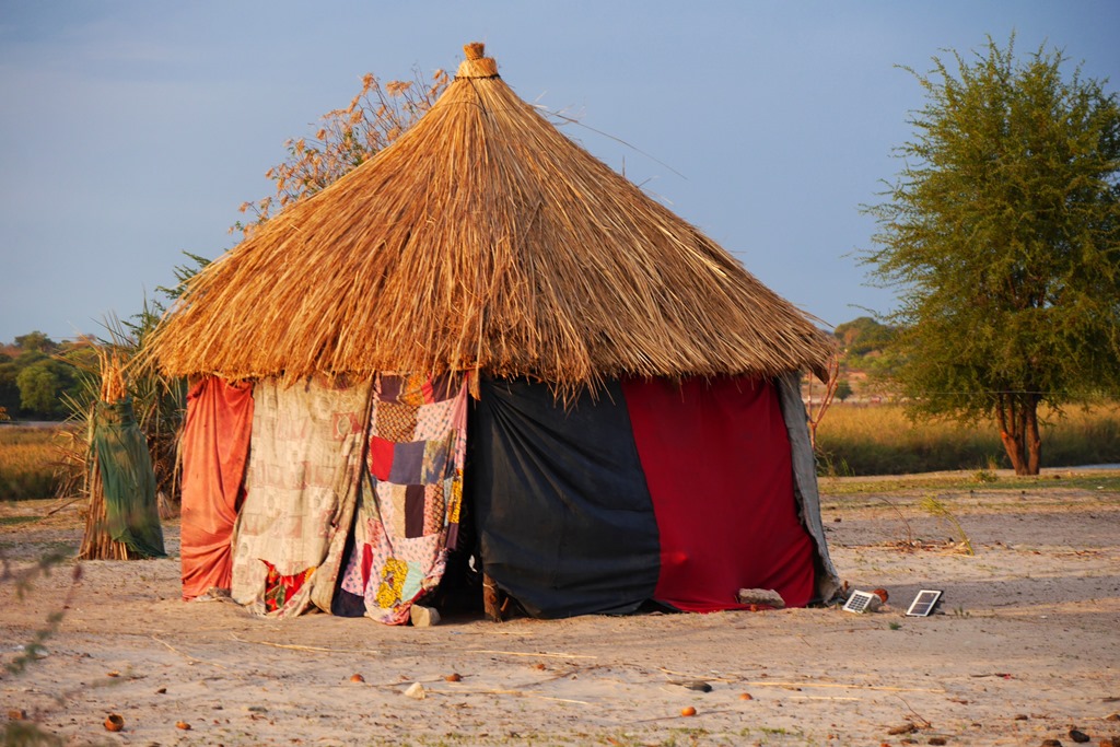 An den freundlich winkenden Menschen und der nur äußerst seltenen Bettelei merken wir, dass die meisten Reisenden, sicher aus Zeitmangel, die schnellere B 8 wählen. Auf der ganzen Strecke bis hierher, zur Mahango Lodge kurz vor Divundu, ist uns nicht ein Touristenfahrzeug begegnet. Durch mehrere schöne Begegnungen mit den Dorfbewohnern ermutigt hatten wir uns entschlossen, auf dieser Strecke eine “Wildübernachtung” in der Nähe eines Dorfes zu wagen. In ländlicher Gegend hatten wir in anderen Ländern noch nie Probleme, aber Afrika ist da noch eine andere Nummer und unsere bisherigen “Wildübernachtungen” hier in Namibia waren immer in absolut einsamer Gegend. Also fragte ich in einem Dorf einen älteren Mann um Erlaubnis für den anvisierten Platz. Zu meinem Unbehagen hatte der eine mächtige Alkoholfahne, aber nun gab es kein zurück mehr. Seine Töchter mussten uns den Platz von Ästen und Laub befreien und er persönlich hat uns eingewiesen. Unsere Bedenken waren aber unbegründet, denn alles ging gut. Zwar waren wir innerhalb kurzer Zeit die Attraktion des kleinen Dorfes, aber niemand wurde aufdringlich und mit einsetzender Dunkelheit verschwanden alle in ihren Strohhütten und unser Schlaf wurde nur von einem grunzenden Hippo, direkt neben unserem Auto gestört. Der war aber genauso erschrocken wie wir und verschwand sofort wieder mit einem riesen Platscher im Okawango. An diesem Tag, bei einem Stopp am Fluss, hatten wir übrigens unsere allererste Hipposichtung, zwei Alttiere und ein Baby.