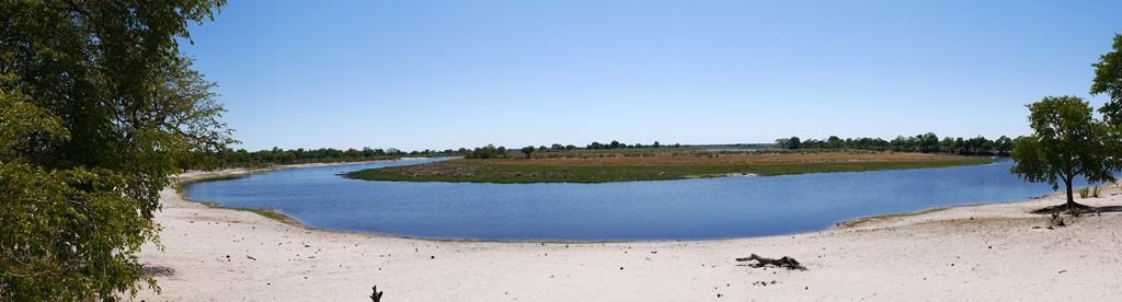 Somit fahren wir am nächsten Tag die für uns sensationelle Entfernung von 400 km bis kurz vor Kongola, allerdings auf Teer. Ziel ist hier die Campsite der Nambwa Lodge im Bwabwada Nationalpark. Diese Campsite ist zwar, da ohne Alternative, ziemlich teuer, aber durch seine traumhafte Lage direkt am Kwando, trotzdem die Ausgabe wert. Von dieser Campsite kann man tolle Tiererkundungen mit eigenem Fahrzeug unternehmen. Allerdings ist wegen der teilweise recht tiefsandigen Pisten unbedingt ein Geländefahrzeug erforderlich. Absolut empfehlenswert ist die abendliche Fahrt zum „Pferdeschuh“, einer riesigen Wasserstelle mit Beobachtungsturm.